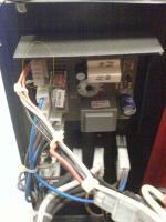 Du solltest die Platine mal ausbauen (sicherstellen, daß Du nachher alle Stecker und Anschlüsse wiederfindest)und ein besseres Foto machen (Oberseite und Unterseite). Ich vermute, daß (für uns z.Zt. nicht sichbar) an dem senkrechten Blech noch ein Triac o.Ä. versteckt ist.
