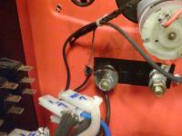 eines der vom pistolengriff weggehenden kabel ist über das kühlblech mit der pluspol-schraube verbunden.