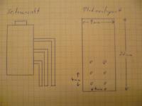 Ist schon klar. Ich hatte eigentlich ja auch nur auf einen Tip für einen passenden Händler gehofft. Habe aber jetzt zwei Bilder angehängt. Die Seitenansicht habe ich aus der Erinnerung gezeichnet. Die Maße des Platinenlayouts sollte +/- 0,2 mm sein.