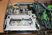 Das Laufwerk funktioniert nicht, das Band wird nicht transportiert. Es geht weder Vor noch Rücklauf. Ich vermute, dass es entweder einmal nicht richtig zusammen gebaut worden ist, oder bei Betrieb ein paar Zahnräder übersprungen worden sind. Als ich das Gerät öffnete ging nicht einmal der Bandeinzug. Das habe ich soweit hinbekommen.