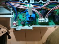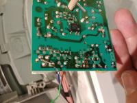 Um das Ganze nun zu simulieren, habe ich die zwei Pinne gebrückt (Foto). Natürlich 0 Ohm zwischen den Pinnen und die Wäsche wäre simuliert nass. Trotz alle dem schaltet der Trockner ab. Irgendwelche Beschädigungen habe ich auf der Platine nicht erkennen können. So langsam bin ich am Ende mit meinem Latein. Gibt es noch irgend eine Idee, wo ich gucken könnte?