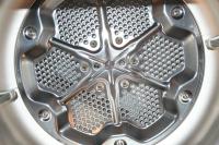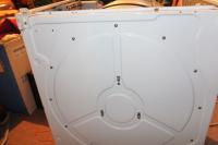 Trotzdem erzeugt jetzt die Trommel beim drehen ein leicht schleifendes Geräusch. Das war vorm Zerlegen nicht so. Daraufhin habe ich innen in der Trommel die hintere Edelstahlplatte noch mal abgeschraubt und das hintere Lager kontrolliert. Kann aber keinen Fehler entdecken, das Lager wird ja von zwei Inbusschrauben in seiner Position fixiert. Das Lager passt auch nur in einer bestimmten Position in die Halterung hinten. Die Schrauben an der Rückwand für die Halterung des Lagers hatte ich nicht geöffnet, die Lageraufnahme hinten ist unverändert eingestellt.