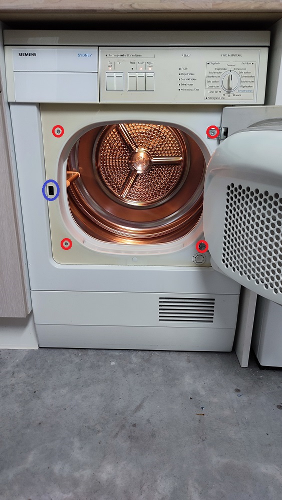 1.) Trockner ist ausgeschaltet und Türe ist geöffnet.