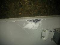 An der Rückwand ist auf Höhe der Riemenscheibe eine Beschädigung zu erkennen.