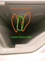Die Düsen sind alle sauber und nicht mehr verkalkt, da ich den Kasten in etwas Zitronensäure eingelegt habe. Das verdreckte Sieb in des Aquastop habe ich ebenfalls gereinigt.