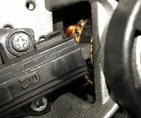 Beide Bürstenkohlen abschrauben und dann Messen.