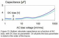 Der Effekt zeigt sich am deutlichsten im Bereich um 1VRMS. Darüber sinkt die Kapazität wieder wie gewohnt.