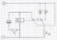 erstmals wünsch ich euch allen frohe Ostern! Ich komme aus Österreich und gehe in die erste Klasse HTL (höhere technische Lehranstalt), Fachrichtung Mechatronik. Zur Zeit bin ich in der Elektronik Werkstatt und wir bauen um die Grundlagen zu verstehen heuer nur Relaisschaltungen auf (ICs, Transistoren,.... kommen nächstes Jahr. Zum Abschluss bekamen wir die Aufgabe eine eigene Schaltung zu erfinden. Dazu will ich unter anderem eine Blinkschaltung miteinbauen. Der Lehrer hatte gemeint, dass wäre nur mit Relais und Kondensator nicht möglich. Nach ein bisschen Grübeln bin ich jedoch auf folgende Idee gekommen (siehe Schaltplan).