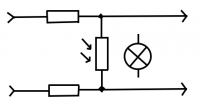 Die Idee ist schon älter, mir als Kompressor begegnet. Ein LDR und ein gewöhnlicher Widerstand bilden einen Spannungsteiler. Wird der LDR beleuchtet, ändert sich entsprechend das Teilerverhältnis. Je nach gewünschter Geschwindigkeit sind kleine Glühlämpchen zur Beleuchtung des LDRs geeignet. Wird ein Lämpchen mit Nennspannung verbunden, dauert es einen kurzen Moment, bis es volle Helligkeit hat. Die Zeit kann man verkürzen, wenn man etwas Strom fließen lässt, mit dem das Lämpchen noch nicht leuchtet, jedoch der Faden vorgeheizt ist. Liegt keine Betriebsspannung mehr an, hat es eine Nachleuchtdauer. Soll die verlängert werden, geht das mit einem Elko parallel zum Lämpchen.