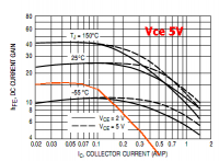 Fakt ist für mich, ein MJE/KSE13003 muss unter den Messbedingungen des Datenblattes;- und das ist VCE 2V bzw 5V die genannten Werte liefern. Anderenfalls ist es kein MJE/KSE13003.