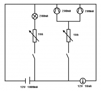 Wenn ich in den Tiefen meines Wissens rumkrame, dann meine ich auch, dass das Ohmsche Gesetz besagt, dass bei parallel geschalteten Widerständen an jedem die gleiche Spannung anliegt, darum habe ich auch alle Widerstände und Verbraucher parallel geschaltet. In Reihe sind lediglich die Potis, womit ich ja eben die Spannung reduzieren möchte um Lüfter langsamer, bzw. das Licht dimmen zu können.