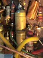 Zu Bild 7: Niedervolt-Elko, wahrscheinlich Kathoden-Elko der Endröhre(n), Kapazität geschätzt 50 oder 100 µF.