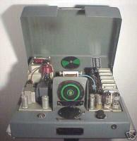 Die restlichen im Vordergrund sichbaren Röhren könnten dann als Oszillator und Teiler auf 100kHz sowie als Mikrofonverstärker dienen.