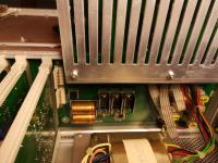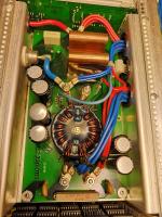 Sichtkontrolle danach: Im Ausgangsfilter waren die Elkos gesprengt, das deutet auf heftige Überspannung hin.
