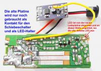 • der Transistor "3" (Typ: Z.R ) der neben der LED aufgelötet ist, war allseitig hochohmig