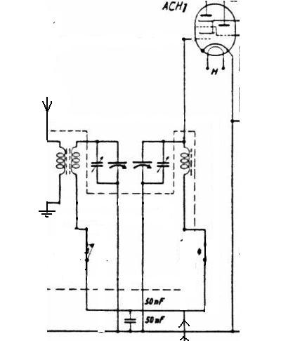Was ich nicht verstehe: Wie sollen die Schwingungen vom Vorkreis in den Eingangskreis gelangen, so dass an ACH1.g1H HF ansteht? Vorkreis und Eingangskreis sind nicht induktiv gekoppelt und enthalten zwar den unteren 50nF-Kondensator als gemeinsamen Bestandteil, da dessen Widerstand für HF aber praktisch null ist, kann hier meiner Meinung nach keine HF-Spannung abfallen und in den Eingangskreis wandern?