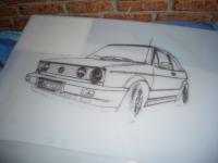 wenn du handwerkliches geschick hast kannst du auch die konturen des 1er golfs in das plexiglas fräsen. da hat einer schon was in die richtung gemacht. siehe hier https://forum.electronicwerkstatt.d......html aber pass auf: du musst es seitenverkehrt einfräsen, da die rückseite leuchtet und nicht die seite, in die du gefräst hast (wichtig bei schrift)