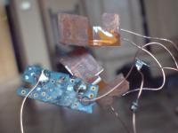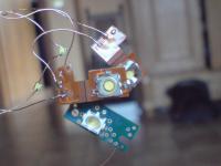 Außerdem hab ich ein paar kaputte Handys geschlachtet und die Fotoleuchten an Kupferlackdraht gelötet.