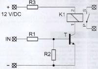 Meine Idee ist eine Relaiskarte mit einfachen Transistor und Spannungsteiler, siehe Schaltbild. Signal-Eingang benötigt nur 5mA (3-12V) und max. Stromaufnahme 80mA.