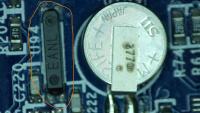 Die Zelle ist ausgelötet und hat noch eine Spannung von 0,8 Volt, trotz längerem Betrieb am Netz. Laut Datenblatt soll sie zwischen 2,8 und 3,3 Volt liegen.