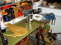 Ist der berufliche Arbeitsplatz gemeint oder die Bastelecke? Bei ersterem könnt ich nur langweilige Aufnahmen der FH anbieten, also stell ich mal von der häuslichen Werkstatt ein paar Pics rein.