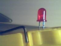 So, ich hab mal eine rote 5mm LED unten, zwischen den Drähten ausgebohrt und einen 220 Ohm SMD Widerstand unsichtbar eingelötet. Es muß ja nicht unbedingt eine Diode sein um die LED in Sperrichtung zu überbrücken - hatte keine ausreichend kleine Diode da