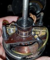 Gelagert ist die Welle in Elliptische (vermutlich) Broncelager, die von den jeweiligen Andruckscheiben (Eine über dem Kollektor.) zerntriert werden. Dadurch wird auch das Axialspiel begrenzt. Kugeln hat das ganze Teil nicht! Auch keine Stopfbuchse, wie ich sie kennen würde.