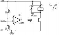 Edit: R3 muss noch berechnet werden, je nachdem wie viel Strom das Relais zieht. Durch den NC-Kontakt des Relais wird der Stromkreis unterbrochen, nachdem die Akkuspannung 1,1V unterschritten hat. Die Bauteile kriegt man für paar cent beim Reichelt oder sonstwo.