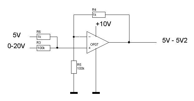 also eigentlich willst du ein relativ kräftiges messignal des man ruhig etwas belasten darf von 0-20V auf 5-6V umsetzen, stimmt des so ?
