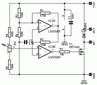 hier sitzt in der endstufe ein IRF540, den wirst vermutlich nicht benötigen, da tuts ein kleiner bipolarer vermutlich auch schon ganz gut, der IRF is dahe drin da ich mit diese schaltung einen 60W dc lüfter von einem ~7kW dieselbrenner betreibe