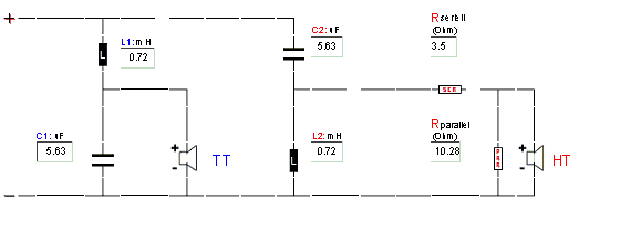 TT = 8 ohm 95 db L1= 0,72mH C1= 5,63uF
