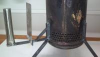 Ich hab einen alten Feuerlöscher genommen, Oberteil abgeflext, 3 Füße angeschweißt und in den unteren Bereich ca. 15 cm Löcher gebohrt. Viele kleine Löcher sind effektiver als wenige große - deshalb funktionieren meine Grillanzünder besser als die gekauften