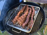 Geht aber auch alles völlig ohne. Nur Kohle, Räucherholz, Kugelgrill und Rippchen.