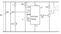 TH (6) über LDR an + und über hochohmigen (ca 1 MOhm, bestimmt Schaltschwelle)R an Gnd