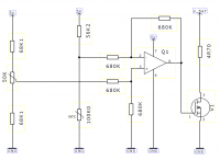 Was ich aber nicht genau weiss ist nun wie ich den Mosfet ansteuern soll. denn wenn die Temperatur genau stimmt also E1 und E2 des OP gleich sind, dann habe ich am Ausgangs des OP 2.5V da ich den OP ja single rail speise. Und bei 2.5 V leitet mein Mosfet. Wie also kann ich das anpassen. Im Gehäuse meines OP habe ich noch eine zweiten OP, also damit liesse sich bestimmt was tun.