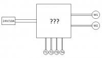 Du brauchst eigentlich nur einen Vierkanal-Funkschalter mit Relaisausgang (vorzugsweise Wechsler entsprechender Stromtragfähigkeit)