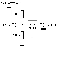 +5V -> R100K -> 4016 Eingang und R100K ->Masse