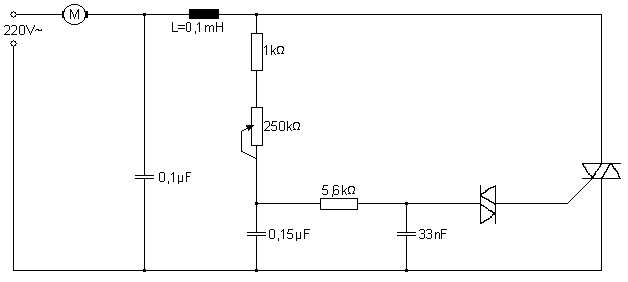 an dem poti verstellst du den phasenanschnitt...wenn der widerstand dort gleich Null ist, kommt auf M die maximale effektivspannung, d.h. du kannst einen schalter oder ein relais parallel zum poti schalten, um das ding per knopfdruck auf 100% zu stellen