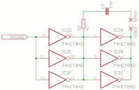 "die Ausgänge eines Hex-Inverters" war wohl nich so gut ausgedrückt. Es sind die Ausgänge mehrerer paralleler Inverter. Der Aufbau ist folgender: µC an drei Inverter-Eingänge, deren Ausgänge parallel an ein Bein des LS und drei weitere Eingänge, und deren Ausgänge an den zweiten Pin des LS. Siehe Bild unten.