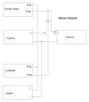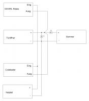 Ich habe die Schaltung von Rasender Roland umgesetzt. Hoffe ich jedenfalls. Leider piept dann der Pieper auch, wenn der Türöffner mittels Codetaster betätigt wird. Vor allem während der gesammten eingestellten Öffnungszeit von 10 Sekunden.