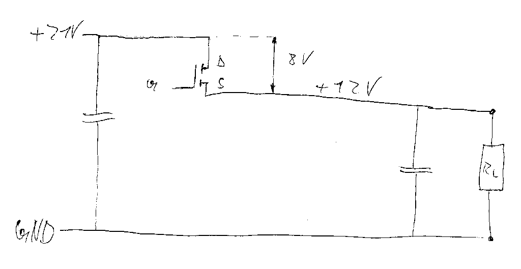 Ich hab jetzt endlich Zeit gefunden etwas auf zu bauen. Und zwar: Ein MOSFET schaltet die negative Seite der Last gegen null, die positive Seite der Last ist direkt mit ca. 20V verbunden. Zwischen MOSFET und Last hängt noch eine Spule, zwischen Spule und MOSFET hängt noch eine Freilaufdiode gegen +20V.