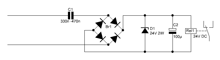 So sollte das aussehen! Die 24 V Z-diode begrenzt die Spannung auf 24 V ! Die Diode in deiner Zeichnung ist überflüssig. Der Brückengleichrichter sollte für 250 V AC ausgelegt sein.