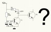 Versuch noch mal ohne den Widerstand 1K an der Basis von T2;