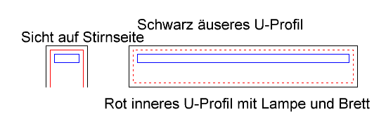 Im Einen U-Profil steckt ja eine Art Brett, worauf die Lampe befestigt ist. Im anderen U-Profil wird diese Profil ja eingesteckt.