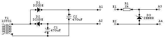 Nimm nen Flachtrafo, 2x 21 Volt mit jeweils ab etwa 0,2 Ampere (Reichelt...UI30/16,5 221....6,35 Euronen...Stand 2004)und dann versuche es mal mit folgender Schaltung: