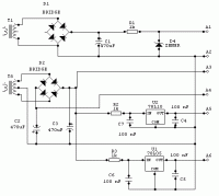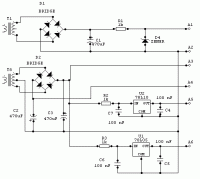 bei den geringen Strömen kannst Du statt der Reglerbausteine nur mit je einer Zehnerdiode stabilisieren. Sparst Dir dann die Beschaltungen der Regler mit den Kondensatoren und evtl. je einer Rücklaufdiode!