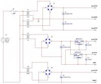 Die +/- 22V sowie die 10V Versorgung sind für einen DAC0800 und einen OP. Müssen also keinen grossen Strom liefern. Der Strom der 5V Versorgung ist auch vernachlässigbar klein, nur die 55V Regelung muss bis etwa 100mA liefern können.