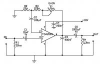 Ich bin auf diesen Schaltplan gestoßen, und der ist so ziehmlich genau das was ich suche, ich hatte schon mal den TDA2003 in Standard aufgebaut, und versucht mit einer Vorstufe so etwas zu realiesieren, der KLang war aber äußerst schlecht und dumpf...Miess.