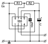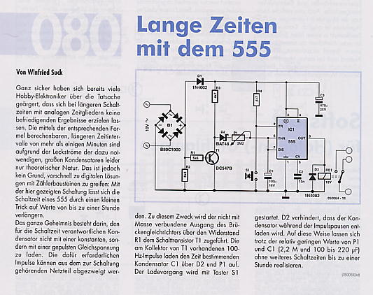 Besser als der 555 eignet sich der 7555, der ein CMOS-Chip ist und den Einsatz viel größerer Widerstandswerte und damit von Folienkondensatoren erlaubt.