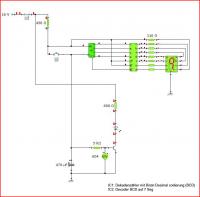 Hab die Schaltung noch ein wenig erweitert: Sobald der Zähler um eine Ziffer nach oben geht, soll eine Lampe für ein par Sec. leuchten, welche allerdings mit 24V betrieben wird anstatt wie alles andere mit 12V. Ich weiß nun nicht was für einen Transistor (Q1) ich dafür verwenden muss...habe schon ein par zerstört *g* kann mit da jemand helfen? Auch bei dem zweiten Transistor (Q2) weiß ich nicht was ich da am besten nehmen soll...